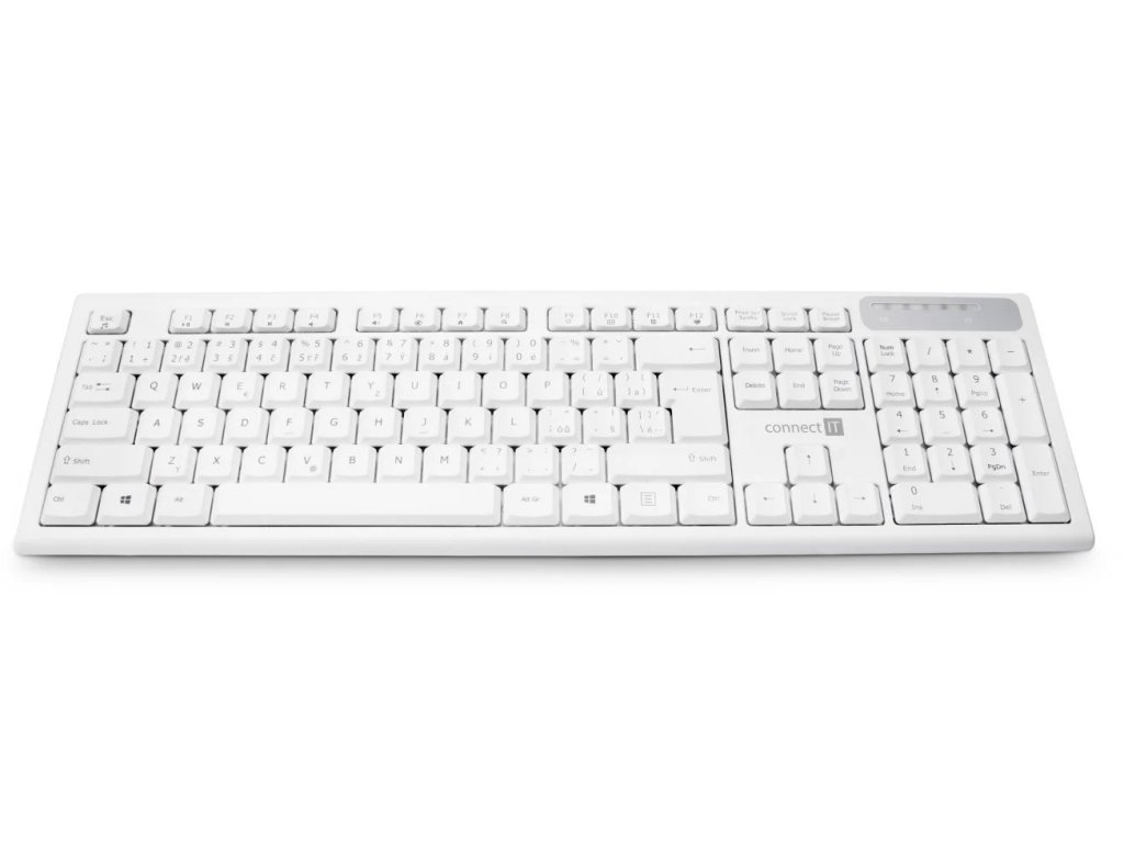 Klávesnica – bezdrôtová (2,4 GHz), česká a slovenská lokalizácia, membránový spínač, formát klávesnice 100 %, tichá, biela
